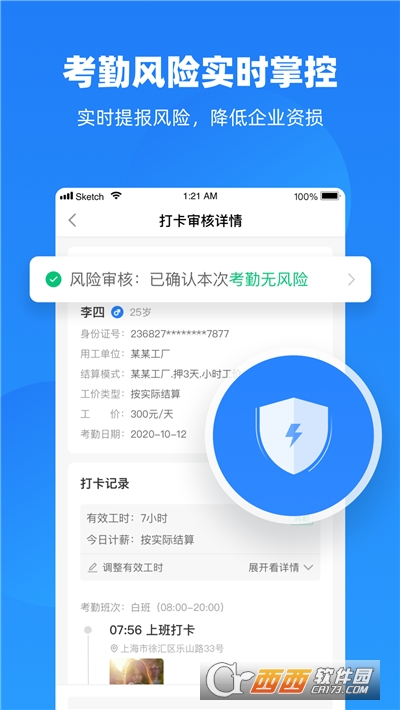 【风险概况】:查看辖下各工厂员工的考勤风险数据,并可针对明细做详细审核,管理风险,减少资损