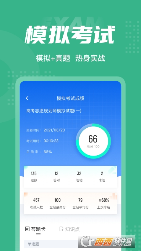 高考志愿规划师题库内含考点练习,全国通用卷以及地区卷模拟练习,以及按照固定考试比重的随机式的抽题的真题考场,成绩单实时记录考试数据,一点一滴的反馈考生近期学习状态以及自我正确率的提升,大大的给予考生通过考试的信心。