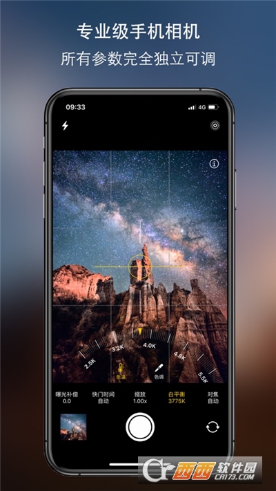 - 专业相机模式:解锁手机相机专业模式,您可以针对快门时间,白平衡,对焦,曝光补偿等各个参数进行完全独立调整