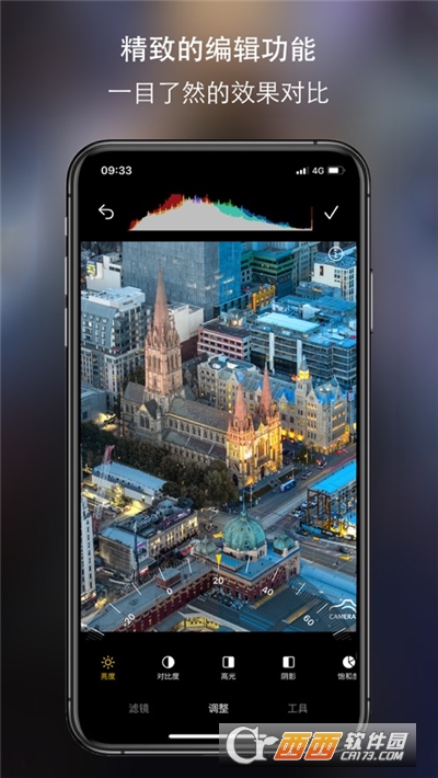- 高水准的编辑功能:具有极佳效果的多种图像调整工具(亮度,对比度,高光,阴影,饱和度,自然饱和度等),效果媲美lightroom