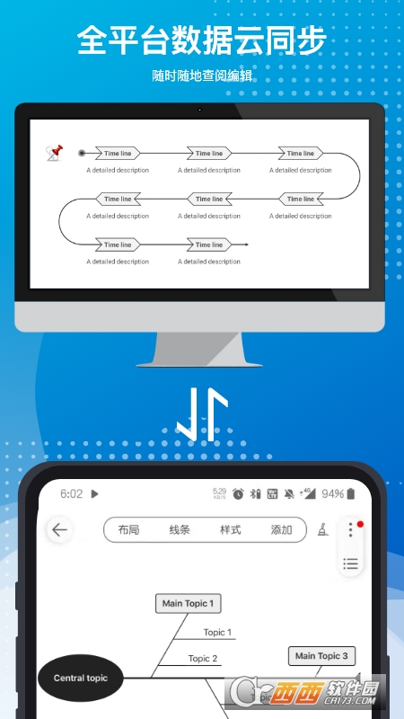 [支持手机/pad/电脑/网页],数据同步,不限时间和地域使用思维导图;