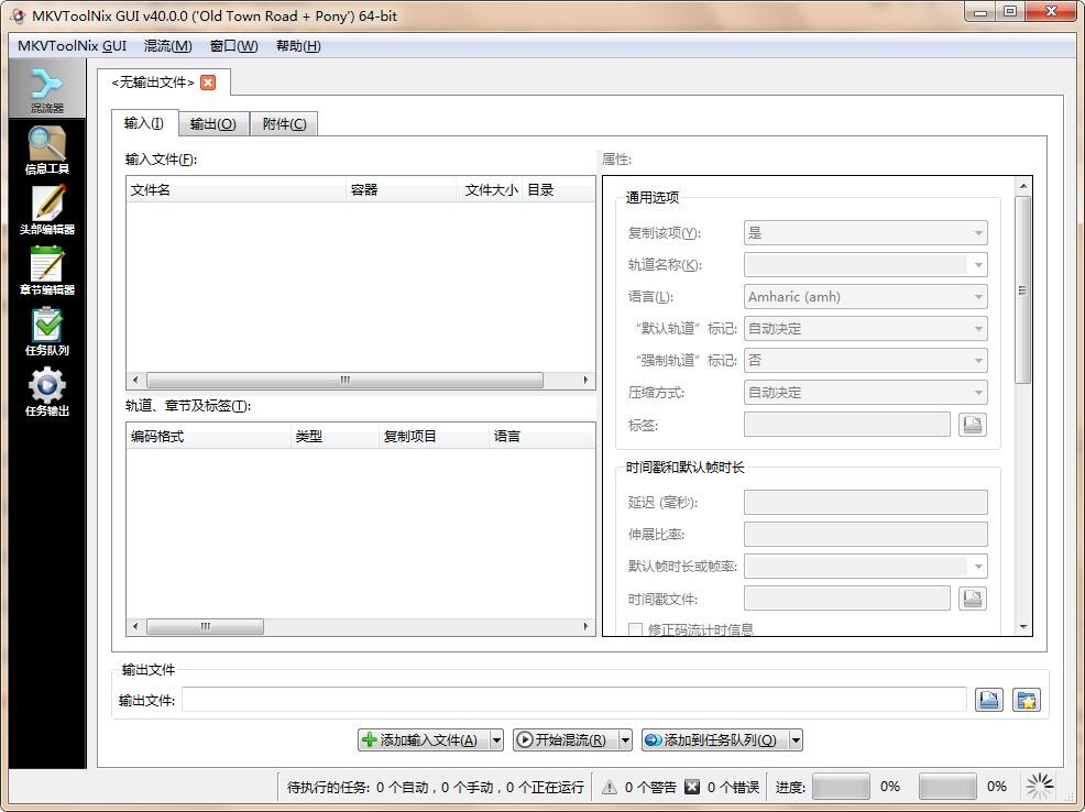 MKVToolNix 启动后默认显示简体中文界面,但注意软件不能放在中文目录,否则只能显示英文界面。