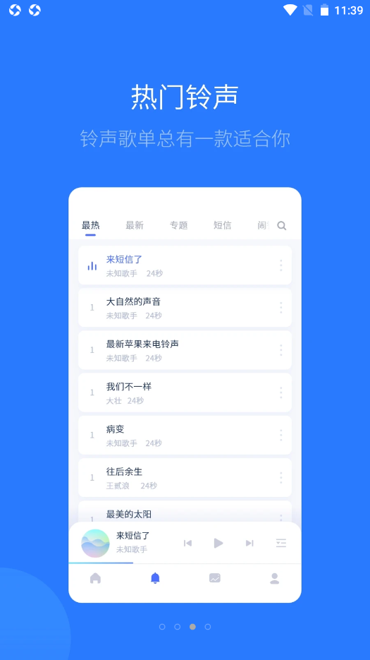 3、喜欢壁纸的朋友们不可以错过这款软件,同样,喜欢手机铃声的朋友们也不可以错过这款软件,软件同样为用户们提供了非常多的优质的手机铃声服务,让大家都可以轻松享受手机;
