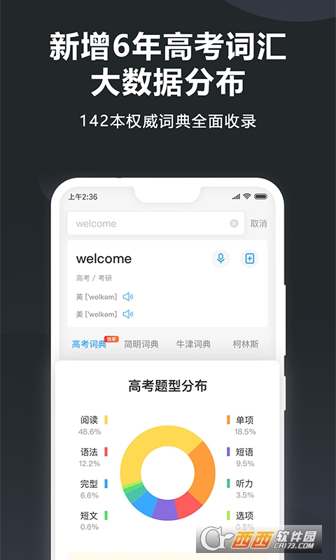 身份词典:常考释义,大数据定向目标考试,分析单词出现频率,预测考试趋势。