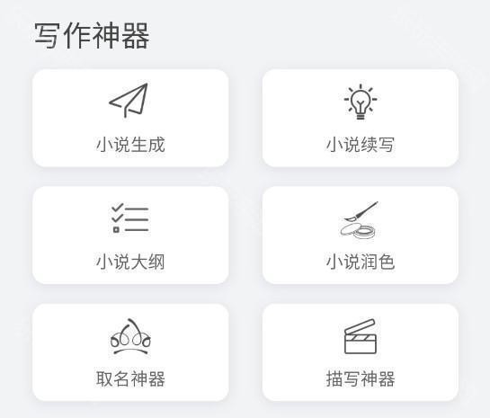 1、下载安装好软件后,进入软件“首页”在“写作神器”栏中可以选择相应的功能为小说编写框架