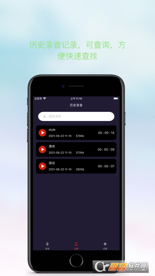实时展示您的所有录音文件。随时随地倾听自己的声音