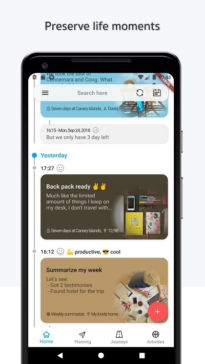 * 有6种方法来组织你的条目、笔记......:旅程、活动、标签、类别、人物、地点。