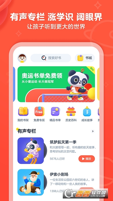 由作家、名师、资深编辑组成专家团队,根据少儿成长阶段分级推荐全球优秀图书、睡前故事、有声故事、儿歌、儿童读物、新课标阅读、绘本、漫画、听书、童话、童谣、古诗、国文、英语、卡通、科幻等内容,科学培养孩子终身阅读习惯。