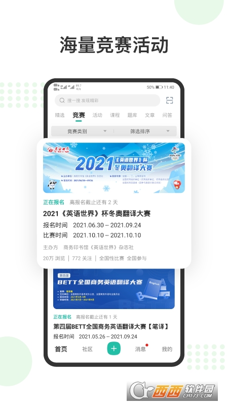 赛氪app最新版是一款针对当下所有职业学院以及数理课的所有竞赛项目综合起来的平台,在这里,只要您想,您够厉害,来报名参赛即可,免费报名,并且设计的赛事总达几十项。各种校园竞赛,来完成您的梦想吧,欢迎来鳄斗163手游网赛氪app最新版体验