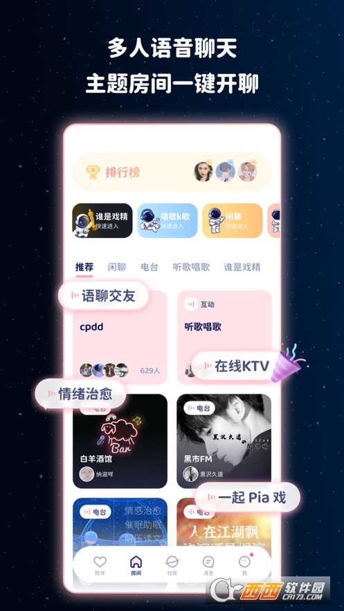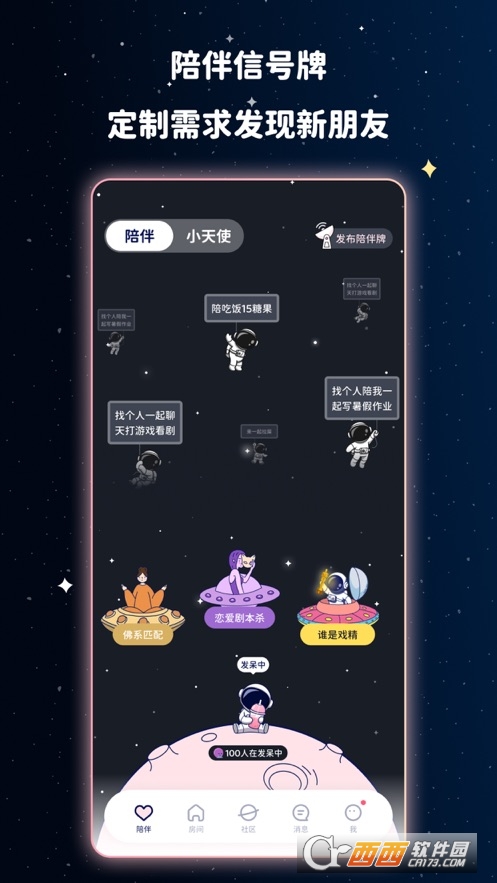 宇宙奶茶馆app是一款面向大学生开发的治愈型社交软件,这款软件对女性朋友十分友好,在这个温暖的小宇宙中,你可以加入圈子和好友一起学习英语,一起看一场难忘的电影,同时可以设置防骚扰模式,以免被男性骚扰,需要的可以来鳄斗163手游网宇宙奶茶馆app进行体验