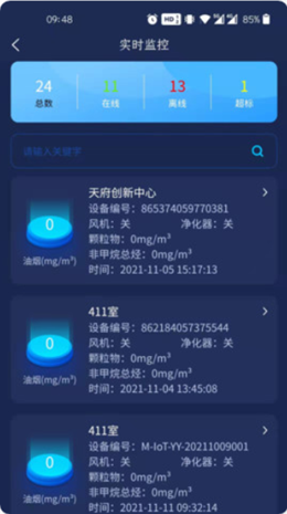 美特物联环境监测app是一款依据非常完善的机制进行管理和开发的综合设备监控和统计数据的软件,软件主要的职能就是通过对于各种设备的内容管理进行同步,各种油烟数据以及净化模式还有互联网统计模式,轻松的管理并且及时进行预警,降低污染。
