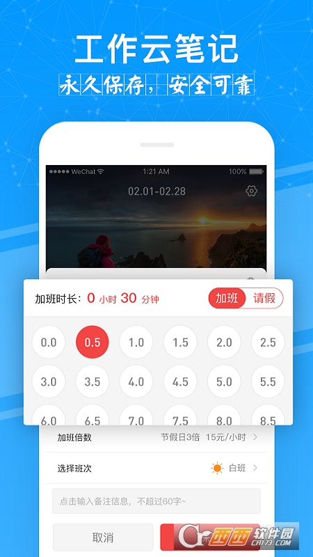 记加班管家app算工资记考勤管家一点记加班综合工时记录,精确记录每天加班时间,自动计算加班工资,让您随手记加班工资记录,还能自动生成加班日记!