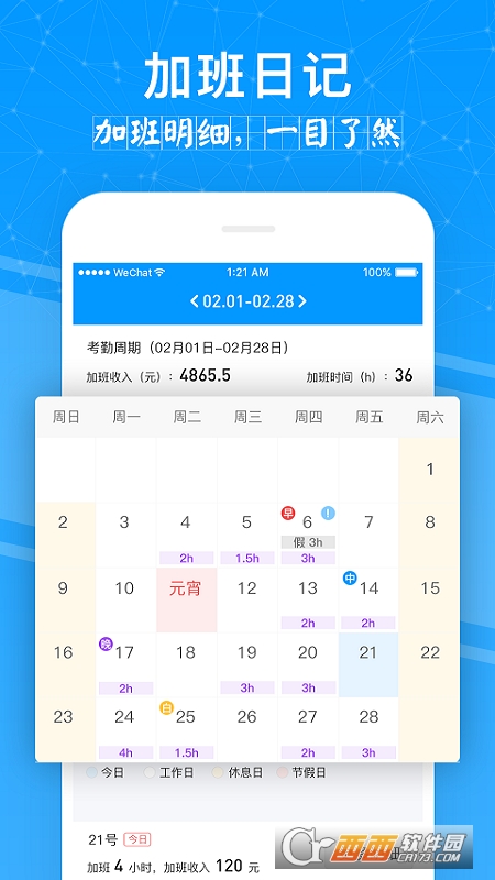 不用再担心扣工资,轻松记住加班,自动计算工资。