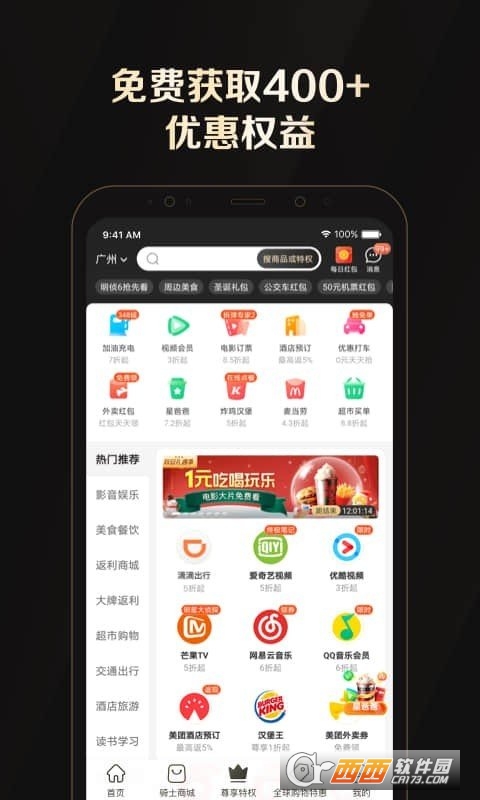 全球购骑士特权软件目前已接入优质的全球尊享特权,其中包括了芒果tv会员免费领、屈臣氏专属优惠、9.9元体验全国贵宾厅等,将会陆续接入更多独家特权。