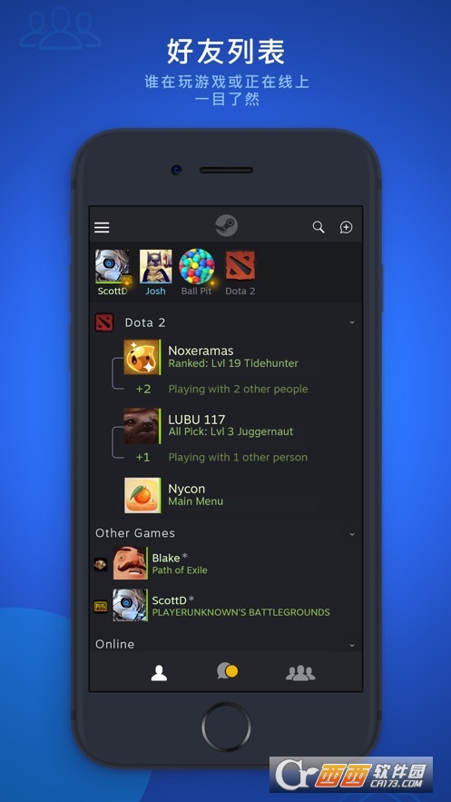 Steam Chat 中文版专门为需要快速联系自己Steam好友的小伙伴准备的app软件,现在你能快速开启自己的趣味好友时光,相信不少的用户都会喜欢,赶紧下载最新的Steam Chat 中文版体验吧!