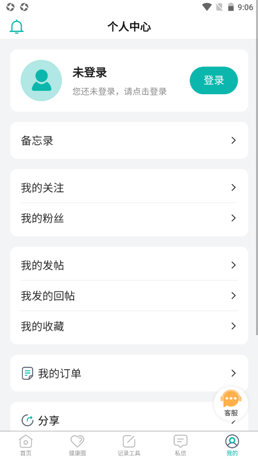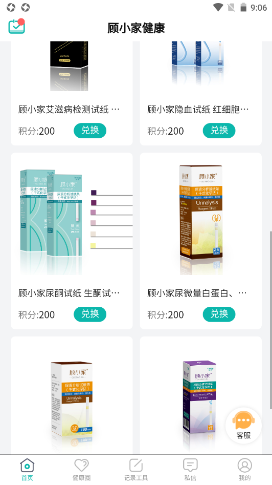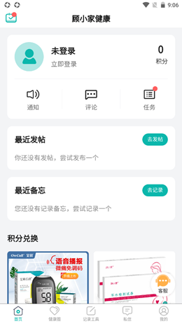 健康指标记录、健康交流、健康备忘、签到积分免费兑换试纸
