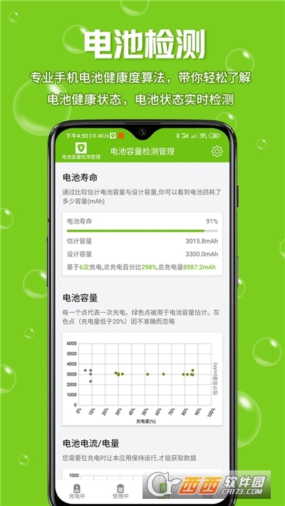 电池容量检测管理是一款非常好用的电池寿命检测软件,这里可以帮助你快速检测手机电池的状态,一键查看自己手机的电池使用状况,为您全方位的检测电池充电问题,保护您的每一次充电安全,以其独特的技术能够识别电池的缺陷, 让你永远知道你的电池在什么地方出了问题,并且解决它。
