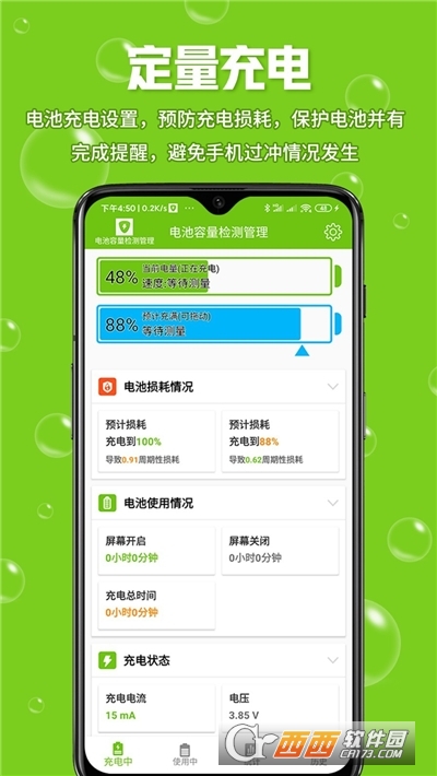 1、定量充电:对电池充电进行设置,预防电池充电损耗,完美保护电池,并会有完成提醒,避免您手机的过冲情况的发生。