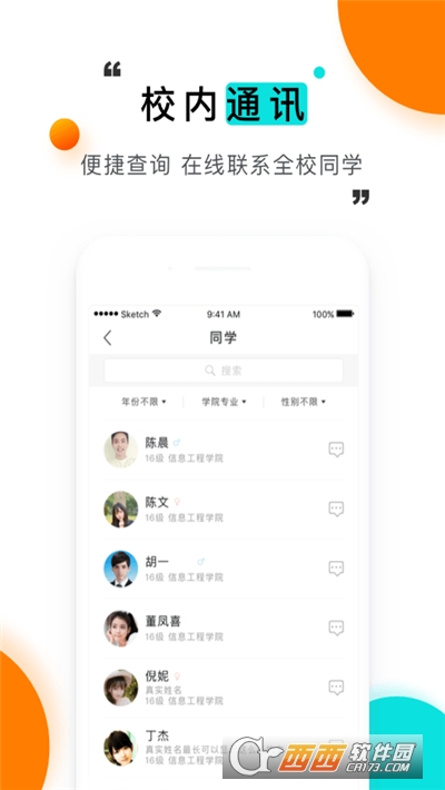 可以找到全校同学的校内通讯录,按院系、年级、学号查找,在线私信更方便。