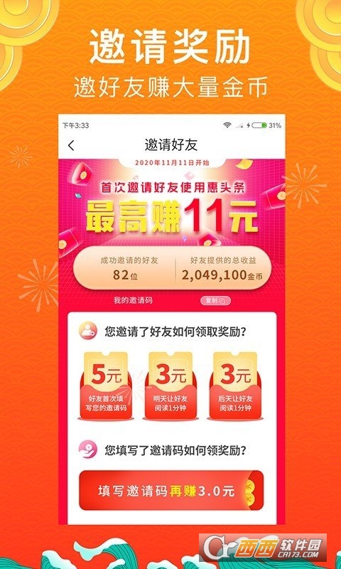 4,邀请好友有惊喜,万元金币享不停,有趣更有钱