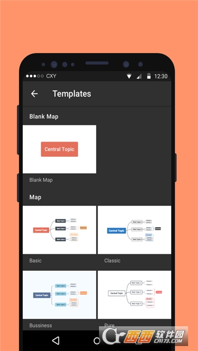 2、操作非常简单,界面很简洁,你可以选择自己设计一个导图也可以选择模板更改;