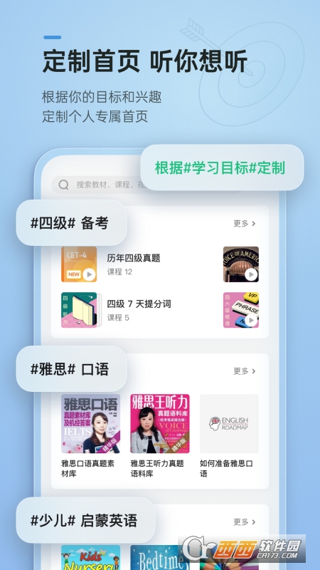 轻听英语 2.0,全新升级,根据你的身份和兴趣,为你定制专属首页内容,你想听的都在这里。