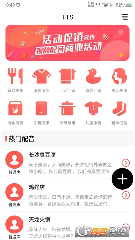 TTS语音合成是一款文字转换为语音的配音软件,适用于商场店铺广告促销配音、地摊叫卖录音制作、英语听力音频制作、有声朗读等多种场景。