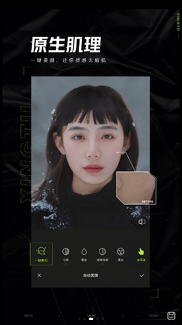 3,同时软件中还建立了非常独特的修复肌肤和细节调整的机制,让所有用户都可以来进行修改和调整,一键整合原生的肌肤纹理,看起来更加真实透明,保证图片的高级。