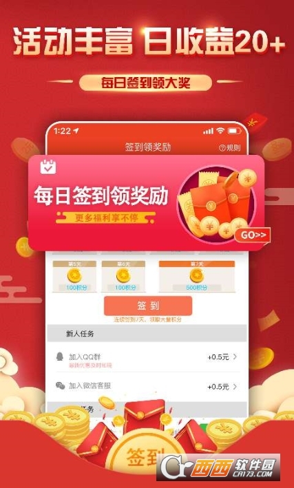 每天签到还可以获得积分奖励,随时随地都可以让你的手机变成一个聚宝盆,操作也非常简单,非常轻松地获得不少的额外收入。