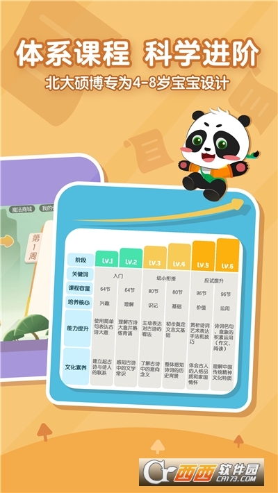 北大硕博合力打造,课程包含L1-L6阶,按照专题科学进阶,以古诗为主线,拓展识字、表达、阅读、文学常识等内容,综合提升孩子文学素养和能力。