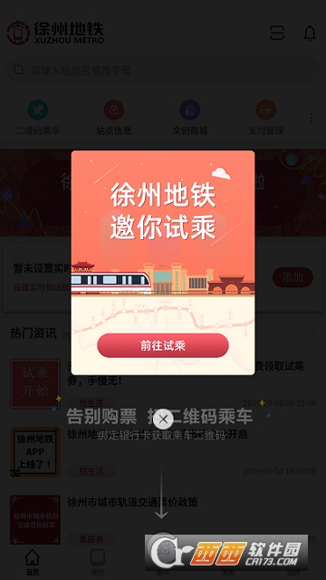 徐州地铁官方,为广大地铁用户提供便捷的地铁乘车服务。码上出发,绿色智慧出行~