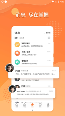 3,校园或者,面试招聘,用户可以在软件上参与不同类型的各种面试宣讲会以及各种应届求职的技巧说明,让用户可以更加简单的来完成各种需求。