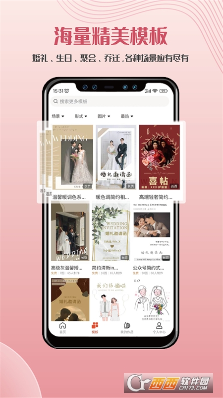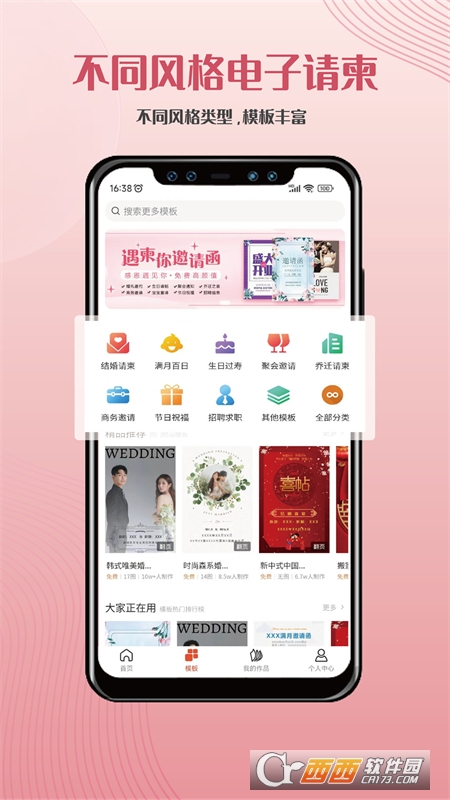 婚礼电子请柬、满月酒宝宝百日(百天)、生日、寿宴、聚会通知、乔迁请柬、商务邀请(会议|活动|开业)、节日祝福、放假通知、招聘简历等海量模板免费使用。