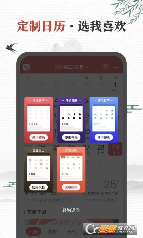 云日历:公历、农历、天干地支老黄历,一个都不少;无缝连接系统日历,支持自定义日历、exchange日历、google calender完美导入。