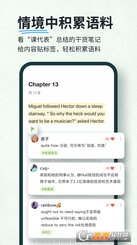 3、每篇文章,都会高亮你在扇贝网上学过的单词,让你感受到不断增长的词汇量有用武之地;