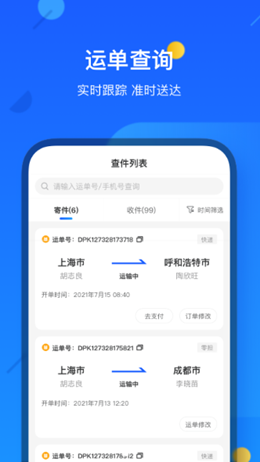 1,德邦快递app依据独特的功能内容来进行全面的数据整合模式,可以将用户自己需要进行管理的各种数据内容都可以来进行统计和上传,方便随时查询快递的单号情况。
