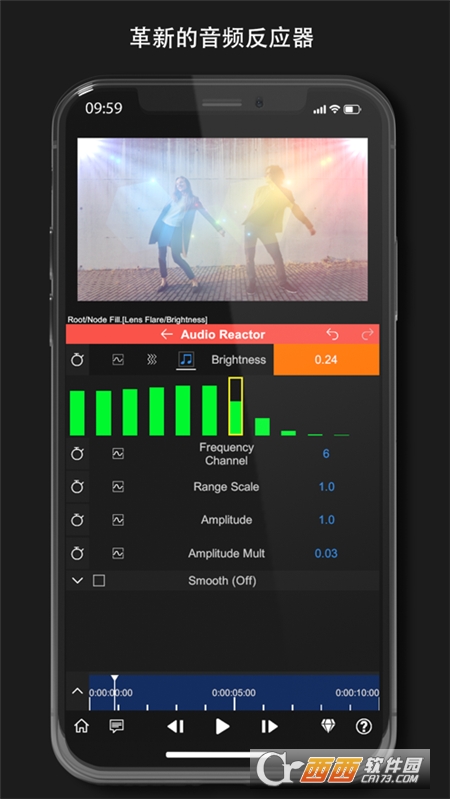 每个属性,每个参数都可以受音频频谱控制。这意味着你可以将音频可视化为任意你想要的东西。