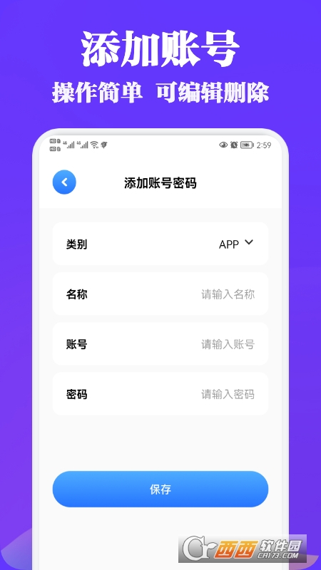 账号盒子管理安卓版,一款简单方便的账号密码管理器软件,可以将不同平台的账号批量存储进来,方便用户随时查看,账号盒子管理app还有多重安全保障,确保您的账号信息不被泄露,是您手机端信息加密管理好选择。本次带来账号盒子管理app安卓版下载。
