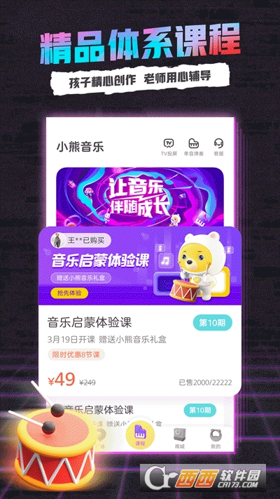 小熊音乐是杭州艺旗音乐宝科技有限公司开发的一款音乐启蒙课堂学习平台,这里有丰富的课程资源、专业权威的专家在线教学,采用多种模式教学,融入各种趣味ai互动环节,让课程更生动,让学习更有趣,需要的朋友欢迎来鳄斗163手游网体验吧。