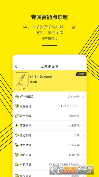 - 购买外研通智能点读笔后将其与外研通App进行绑定,在App上为点读笔设置WiFi,同时App记录笔端学习详情,在指定型号的智能笔上实现音频点播、发语音消息等互动功能