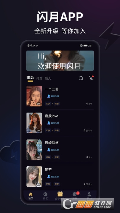 闪月是一个主打真人同城单身聊天交友APP。让您享受新式聊天交友体验。
