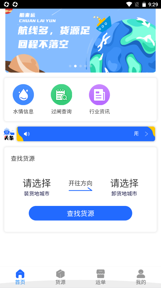 船来运船东端app是一款非常优质的物流管理服务平台,平台将会为众多的用户提供高质量的水路运输物流追踪服务,将会让用户们可以更加轻松地了解到订单的详细情况,快速完成订单追踪业务,提高自己的物流效率!
