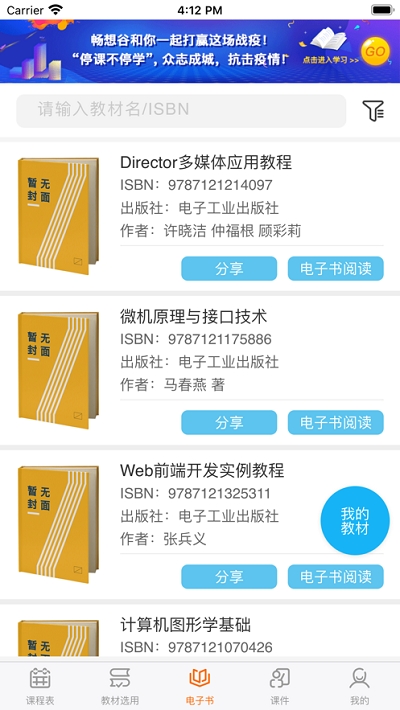 2.注册并登录"小途"教育平台(https://edu.cfph.net/public/)“电子书”栏目查找阅读。