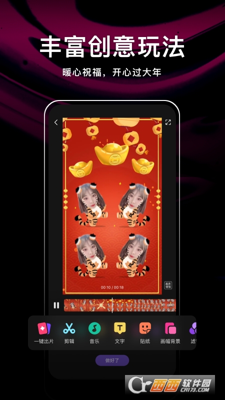 上百种精美水印与优质配乐,随意搭配独一无二!