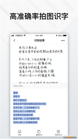 2. 可以对识别的文字编辑、复制、分享。