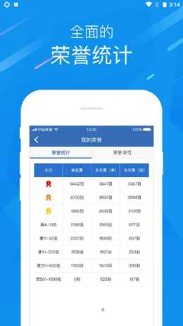 3,统计比赛,荣誉成绩,用户还可以在软件中来看到其他的所有数据内容,包括不同类型的各种模式,随时都可以进行观看不同的成绩以及比赛过程。