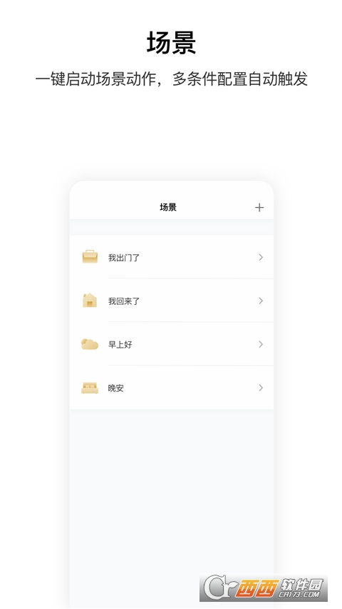 3.您可以新建一个场景,并在场景中添加多个配件。只需轻触场景按钮即可关闭所有灯光,风扇等。