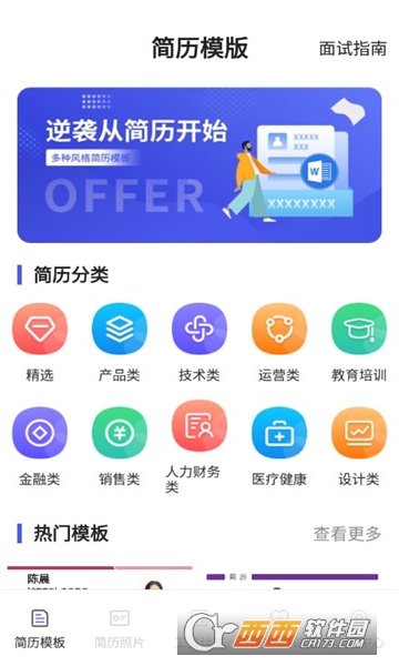 1、便捷好用的简历工具,提供海量简历模板,可在手机快捷制作简历,获得广大用户的认可;