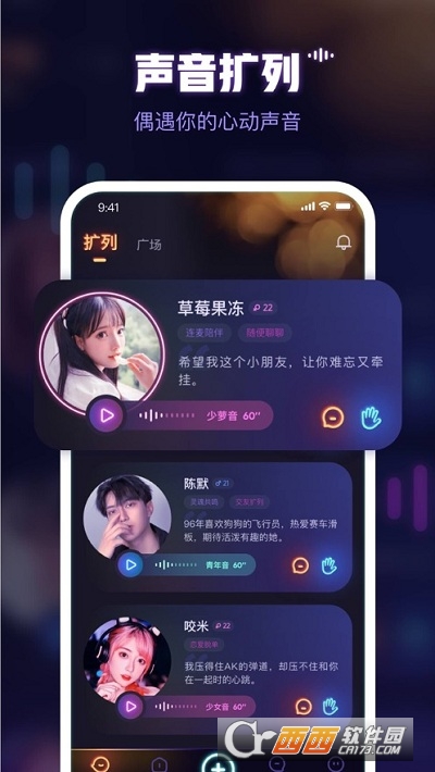 发布声音动态,寻找神仙声线,找到你爱的声音。