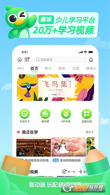 10万+视频素材、2万+学校教材、8000+英文绘本故事,英语启蒙字母、单词词汇、基础发音、语法规则等,零基础学英语,专注英语启蒙;